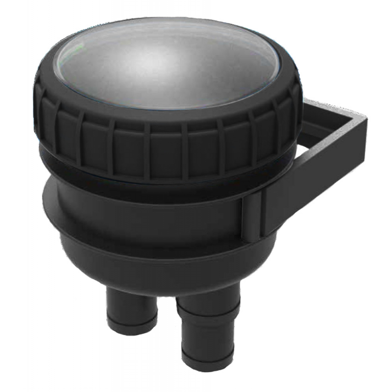Filtro acqua in polipropilene, coperchio trasparente e portagomma (pressofusi) in due misure, adattabili, tagliando la parte non richiesta, in base alla portata necessaria. Filtrante in nylon, indicato per raffreddamento motori.