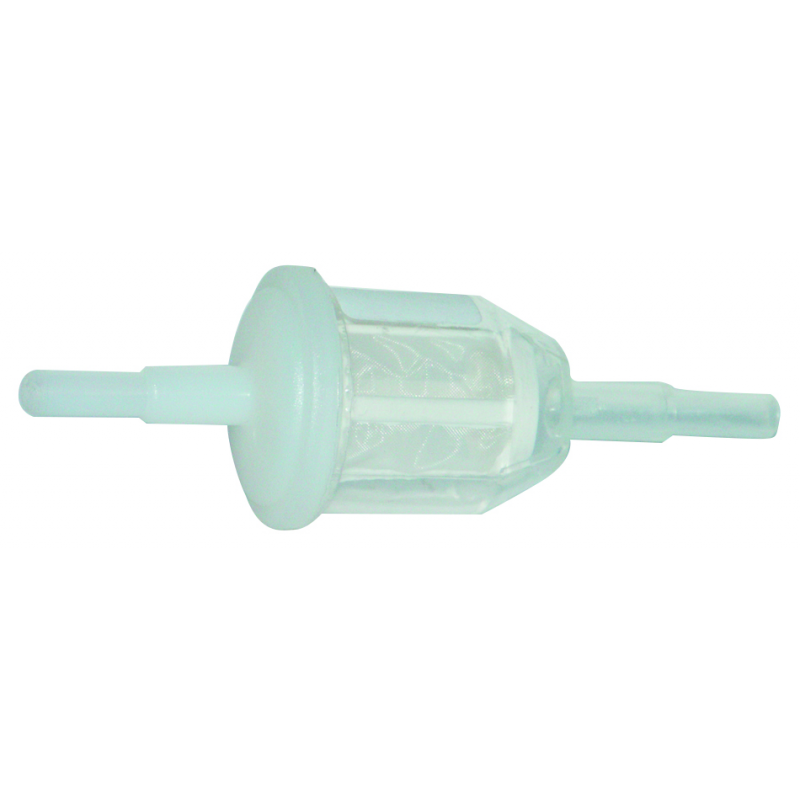 Filtro universalein plastica, per carburante. Filtrante in rete.Portagomma Ø mm. 6/8, portata lt/h 40