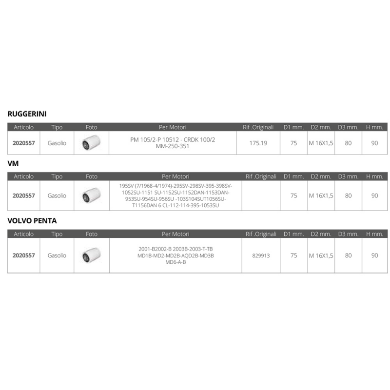 Filtro gasolio dim.Ø est.mm.75 Ø guarnizione mm. 80 altezza mm.90 passo M 16 X 1,5