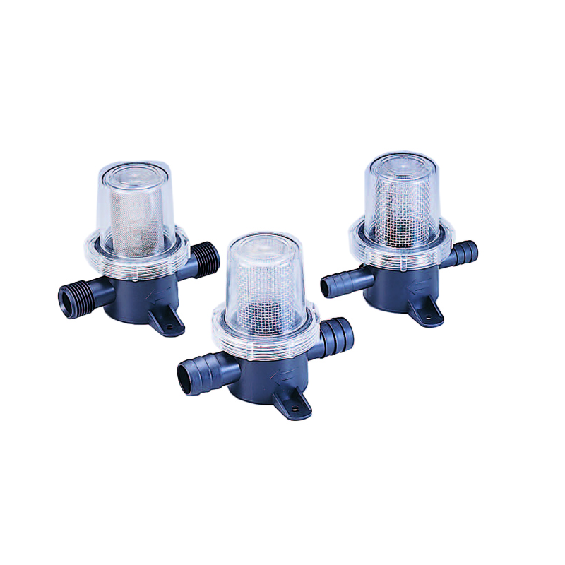 Filtro da usare per evitare intasamenti della pompa causati dai detriti presenti in sentina. Involucro in plastica con coperchio trasparente per facilitare l’ispezionee la pulizia della rete filtrante.