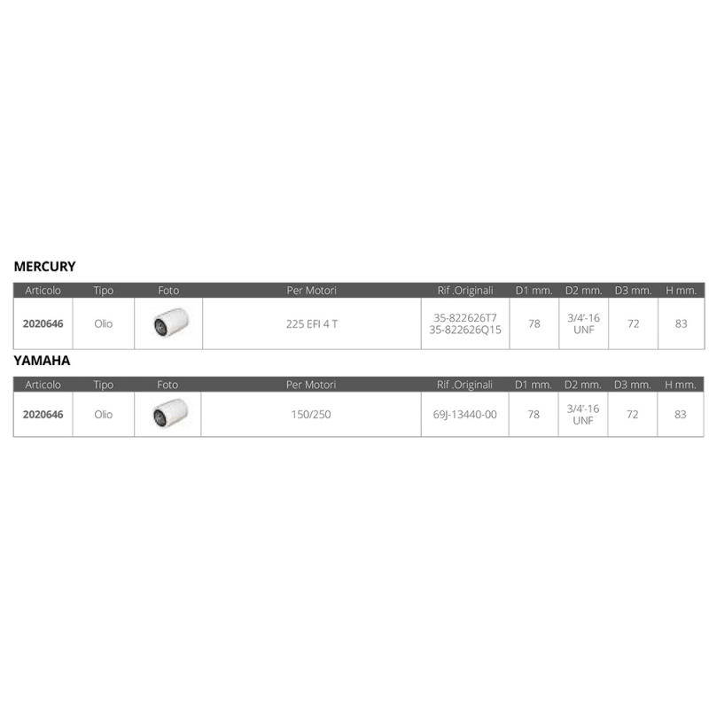 Filtro olio dim.Ø est.mm.78 Ø guarnizione mm. 72 altezza mm.78 passo 3/4' X 16 UNF