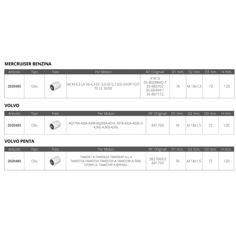 Filtro olio dim.Ø est.mm.76 Ø guarnizione mm. 72 altezza mm.80 passo M 18x1,5