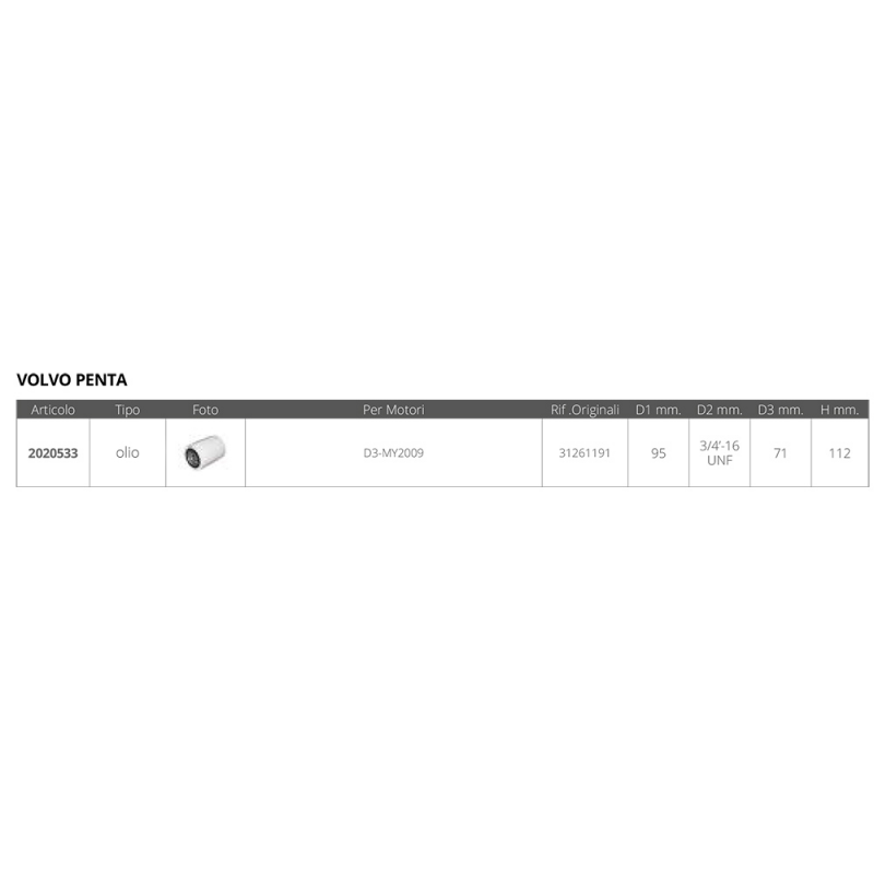 Filtro olio dim. Ø est. 95 mm Ø guarnizione 71 mm altezza mm 96 passo 3/4’ - 16 UNF