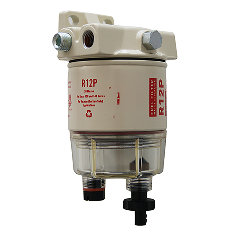 Filtro separatore acqua/gasolio Racor serie SPIN-ON, può essere montato sia sul lato mandata che sul lato aspirazione della pompa gasolio. Raccorderia non fornita.
