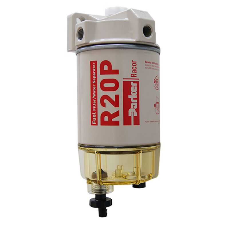 Filtro separatore acqua/gasolio Racor serie SPIN-ON, può essere montato sia sul lato mandata che sul lato aspirazione della pompa gasolio. Raccorderia non fornita.