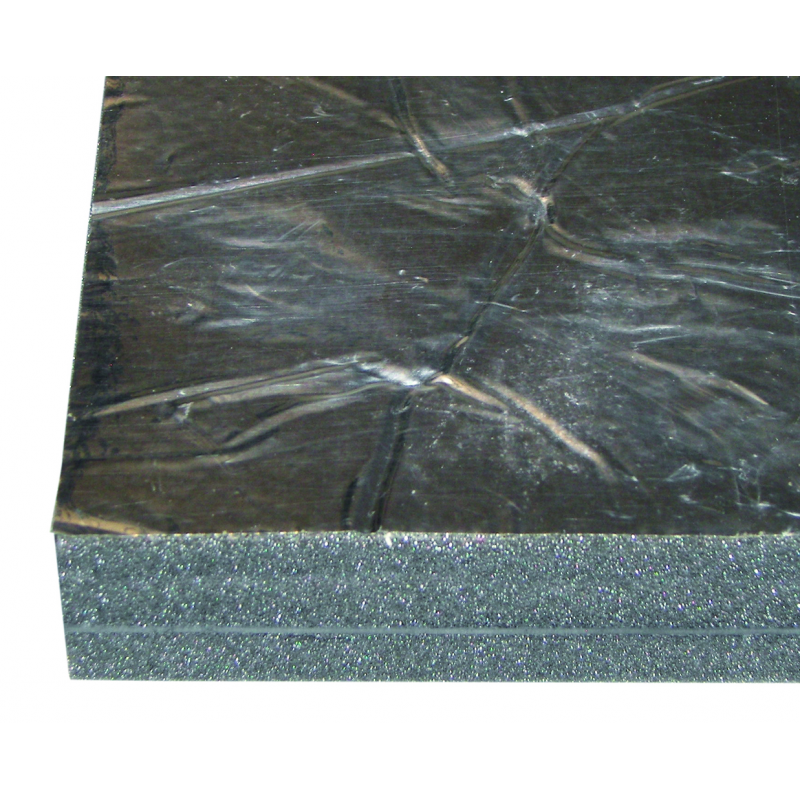 Fonoisolante in resina poliestere espansa ad alta densità, 60 kg/m3, ignifugo classe 1, con all’interno una lastra polimerica EPDM da 2 mm avente peso 4 kg/mq. Superficie a vista rivestita con un film di alluminio liscio molto resistente agli urti. Ideale per l’isolamento di ambienti, vani motore, pareti divisorie, per impedire la trasmissione del calore ecc. Spessore mm. 20. Lastre da mm. 1000 x 1500. Venduto a lastra.