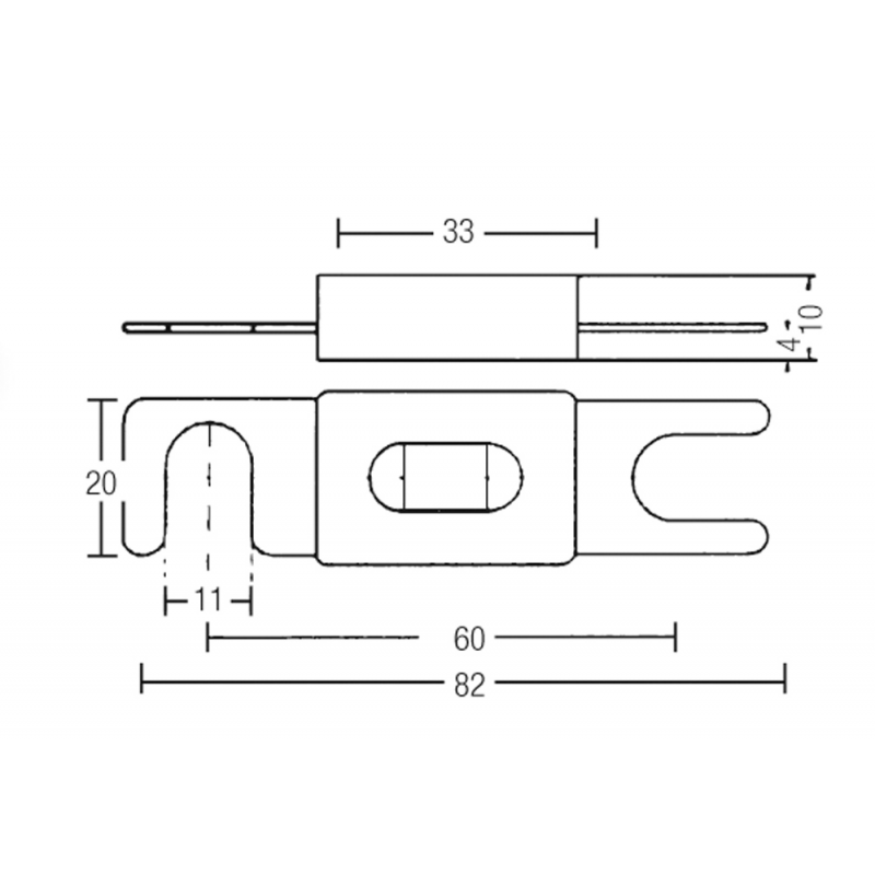Fusibili a lamatipo ANL “ritardati”. Passo 60 mm. Tensione 80V.