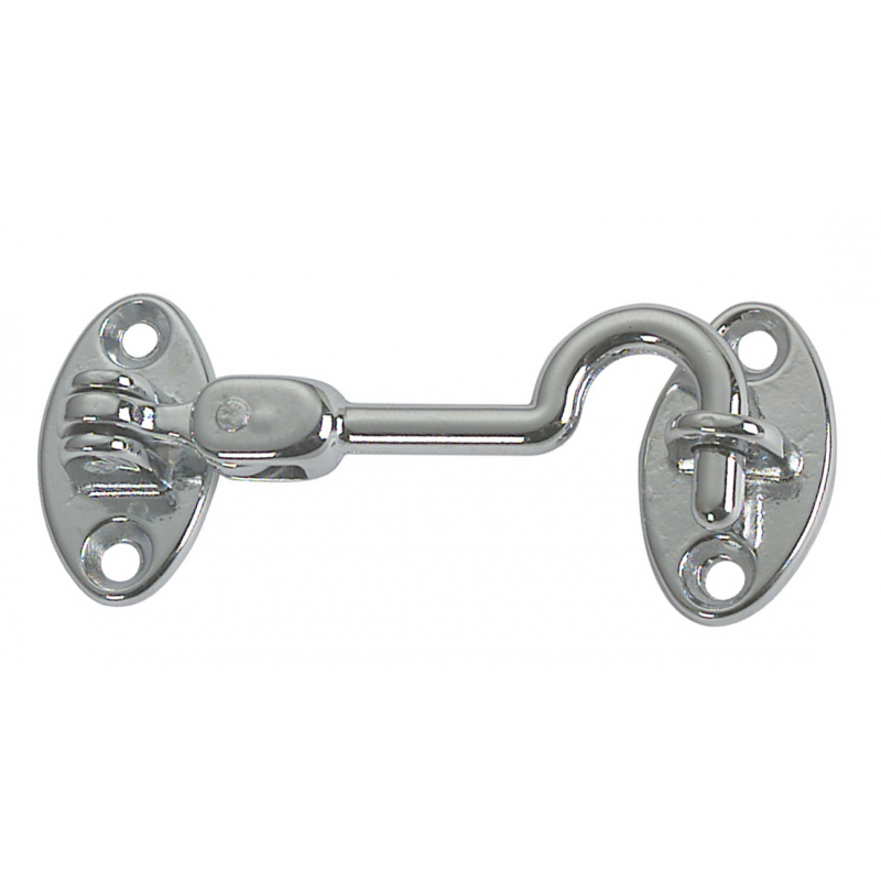 Gancetto fermaporte in ottone cromato a doppio snodo. Lunghezza mm. 65