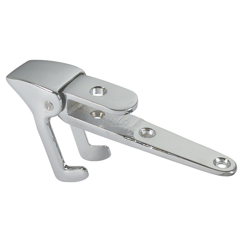 Gancio di sicurezza in ottone cromato per scalette. Dim. mm. 120x40x32.