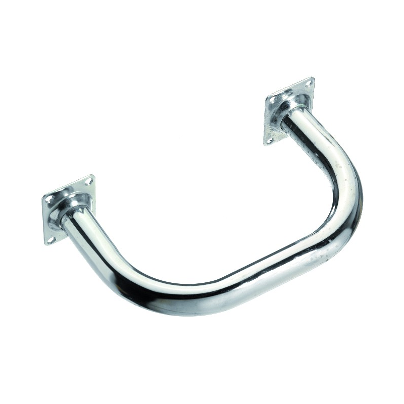 Gradini in acciao inox Ø mm. 25, larghezza fuori tutto mm. 240, profondità mm. 140, basi mm 60 x 45, utilizzabile anche come maniglia.