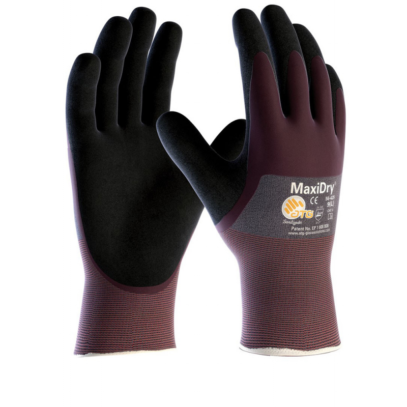 Guanti da lavoro con rivestimento sintetico combinato ad una fodera a filo continuo senza cuciture, concepiti per la protezione dagli oli eper una efficace presa in ambienti umidi. Lunghezza cm.25. Colore viola/nero. Tg.9