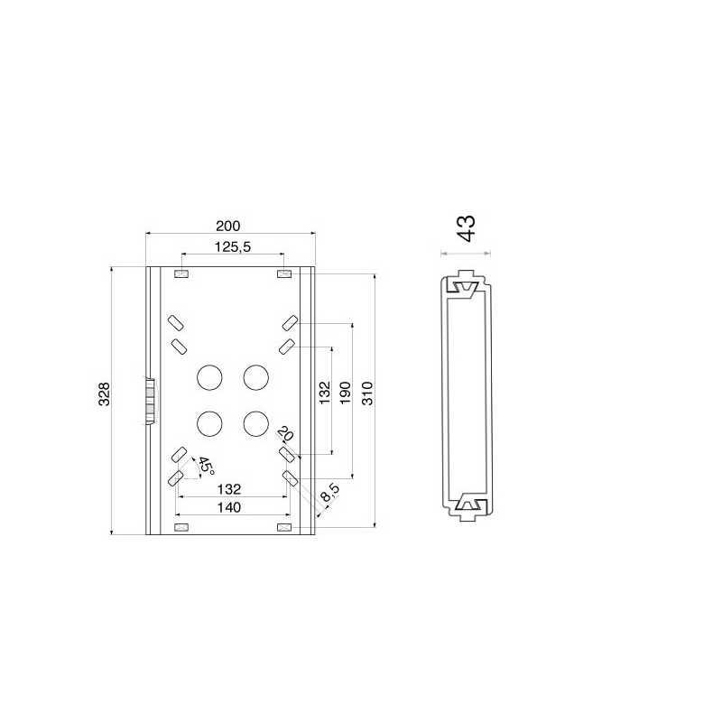 Guida scorrevole in lega leggera mm. 200x330 per art. 6363315/20/23.Si adatta alle scocche art. 6363290/93.