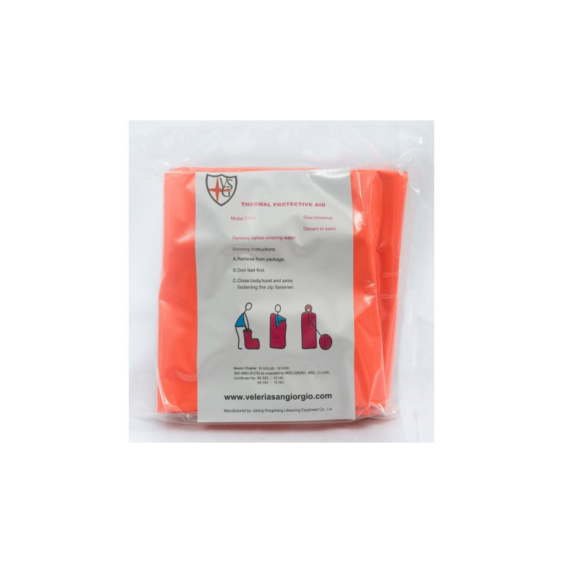 Indumento di protezione termica per scialuppe di salvataggio, zattere autogonfiabili e barche da pesca. Approvato SOLAS M.E.D. Dimensione cm 235x100. Peso g 330