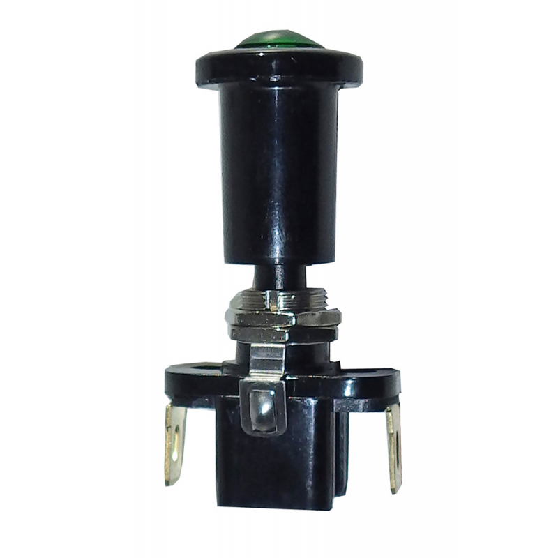 Interruttore a tirettoin plastica con spia luminosa verde.Lungh. mm. 62, foro Ø mm. 12.