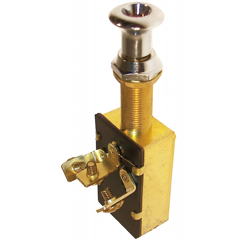 Interruttore a tiretto OFF-ON12V 20A max , con spia luminosa rossasulla testa del pomolo. Foro Ø mm.9.5, lungh. collo mm. 30.
