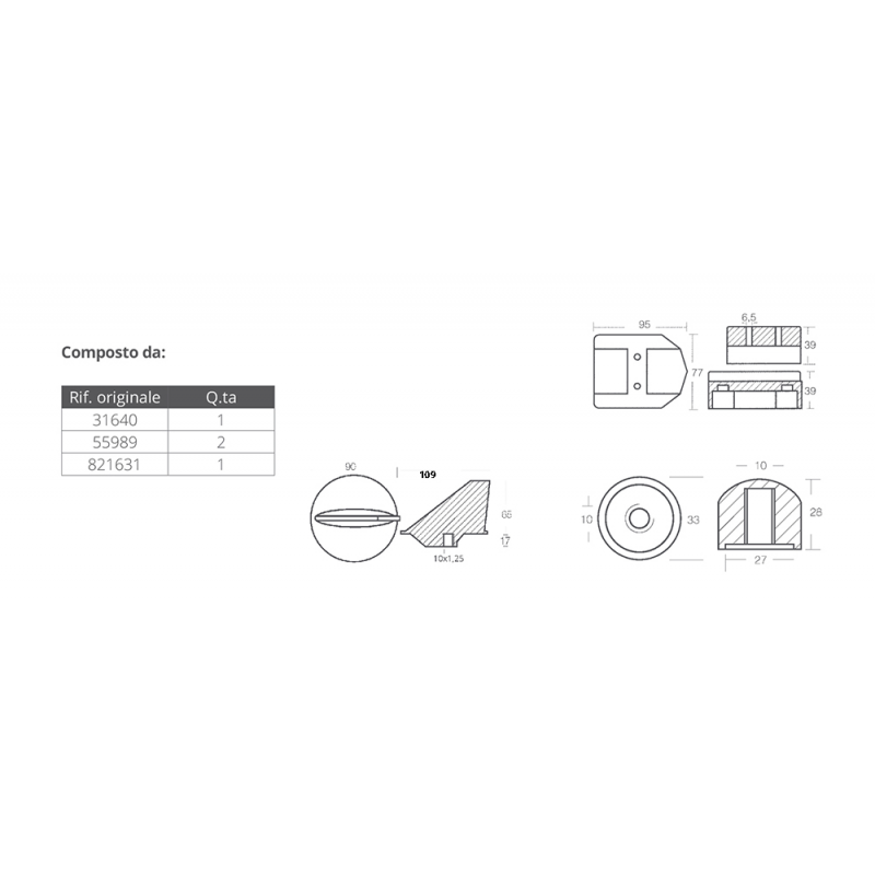 Kit anodi in alluminio per motori mercruiser alpha I generation I dal 1983 al 1990