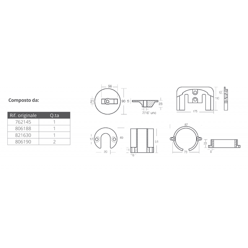 Kit anodi in alluminio per motori mercruiser bravoI dal 1998 ad oggi