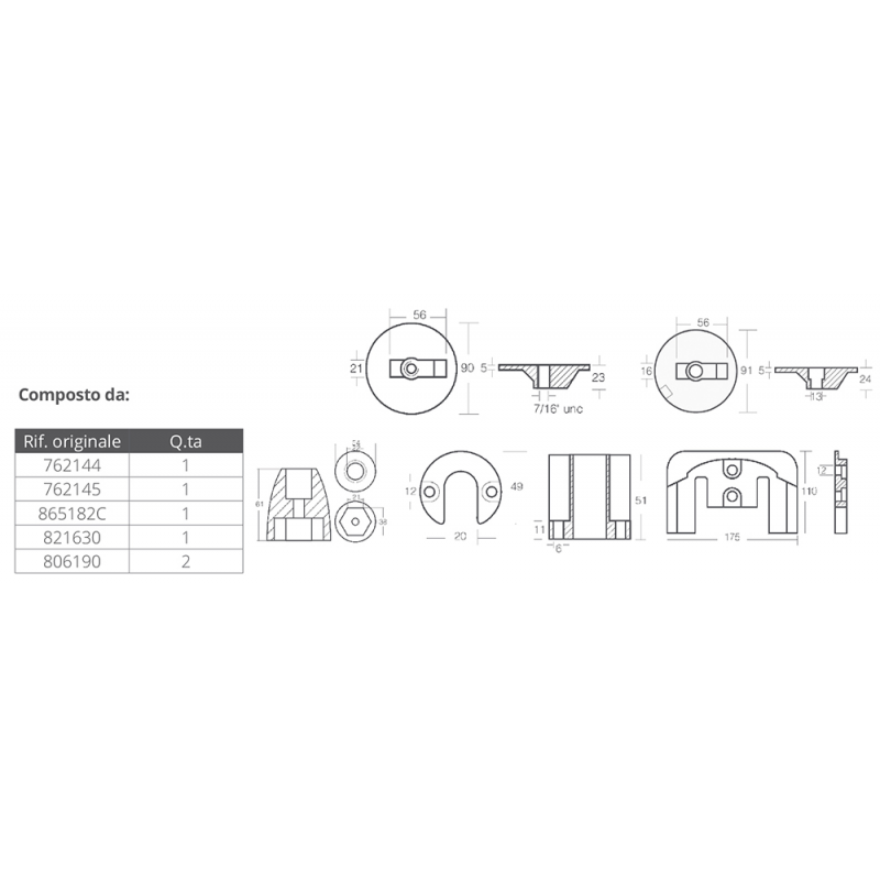 Kit anodi in alluminio per motori mercruiser bravo III dal 2004
