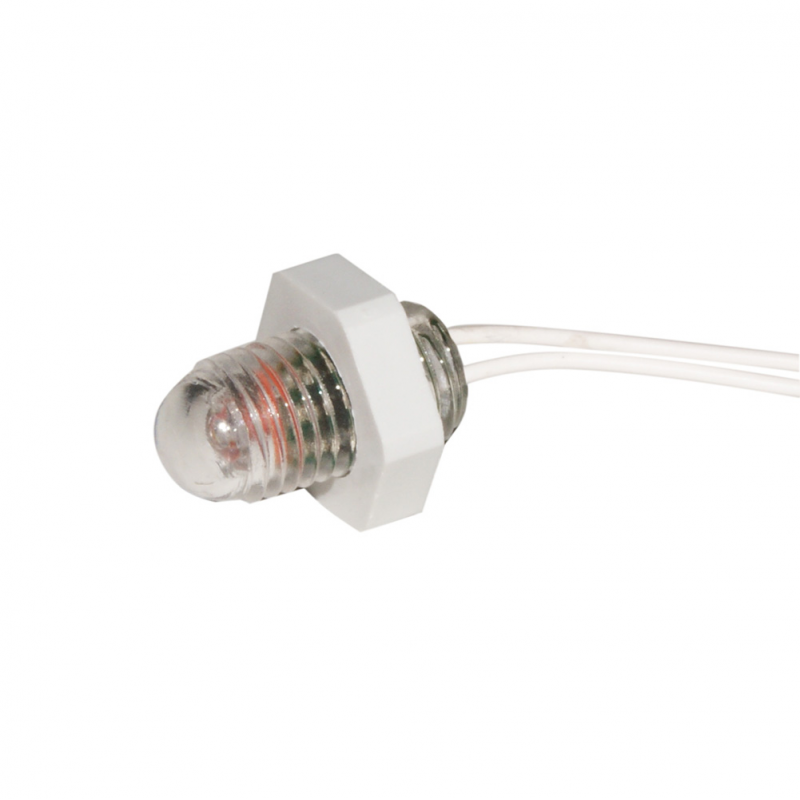 Luce di cortesiain policarbonato a 1 LED ad alta luminosità per esterni. Stagna IP67,filettata per montaggio a vite. Adatte per demarcare o per illuminarescalini, bordi, gruette, passerelle, pozzetti, gavoni, ecc. Dim. Ø mm. 12.Alimentazione 10/24V. Cavo cm. 20. Nessuna polarità. Consumo 0,3W.