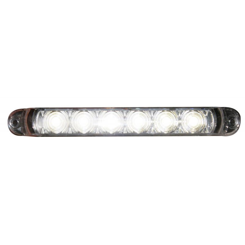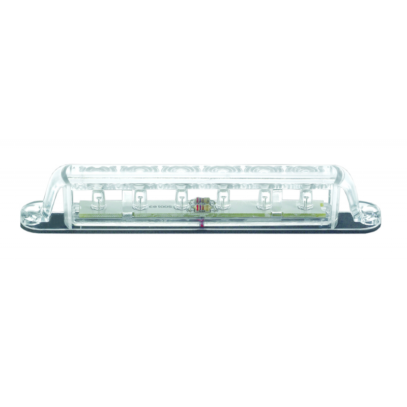 Luce di cortesia a 6 led in plastica, luce bianca naturale, resistente agli spruzzi. Montaggio a filo.