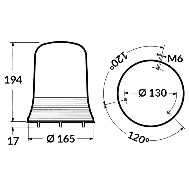 Luce rotante omologata cupola in policarbonato di colore blu e base in polipropilene rinforzato fibra di vetro. Per veicoli prioritari (motovedette, polizia, pompieri, ambulanze, ecc.). Motore con ingranaggio a vite senza fine. Rotazione su bronzina sinterizzata. Filtro antiradiodisturbo integrato nel motore. Stagna IP 44. Temperaturaoperativa -30°+50°C. Velocità rotazione RPM 160+/-30. Flash 130+/-10 minuto. (Lampada Xenon 10 Jules)