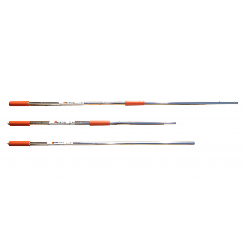 Manico in alluminio anodizzato fisso o telescopico per raggiungere i punti più lontani. Dotato di sistema di bloccaggio a scatto quick-release in acciaio inox e di due comode impugnature antiscivolo. Lunghezza cm da 156 a 278
