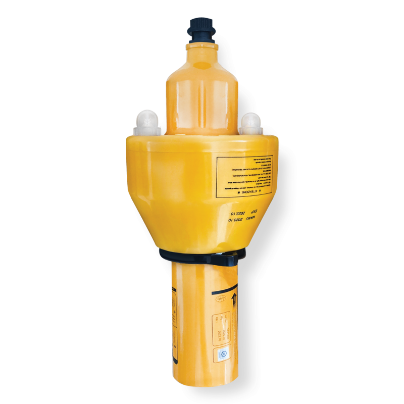 Segnale fumogeno arancione con luci ad attivazione automatica per l’uso in qualsiasi situazione di emergenza uomo in mare. Conforme Solas 74/88, Marine Equipment Directive 2002/75/EC, Res. MSC. 48 [66]- MSC 81[70]. Dimensioni Ø mm. 190x 450h. Peso Kg.4