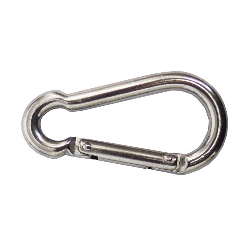Moschettone in acciaio inox AISI 316 con ampia apertura trasversale che offre un maggior passaggio. Dimensioni: D 8mm. L 80mm. A 12mm. E 19mm.