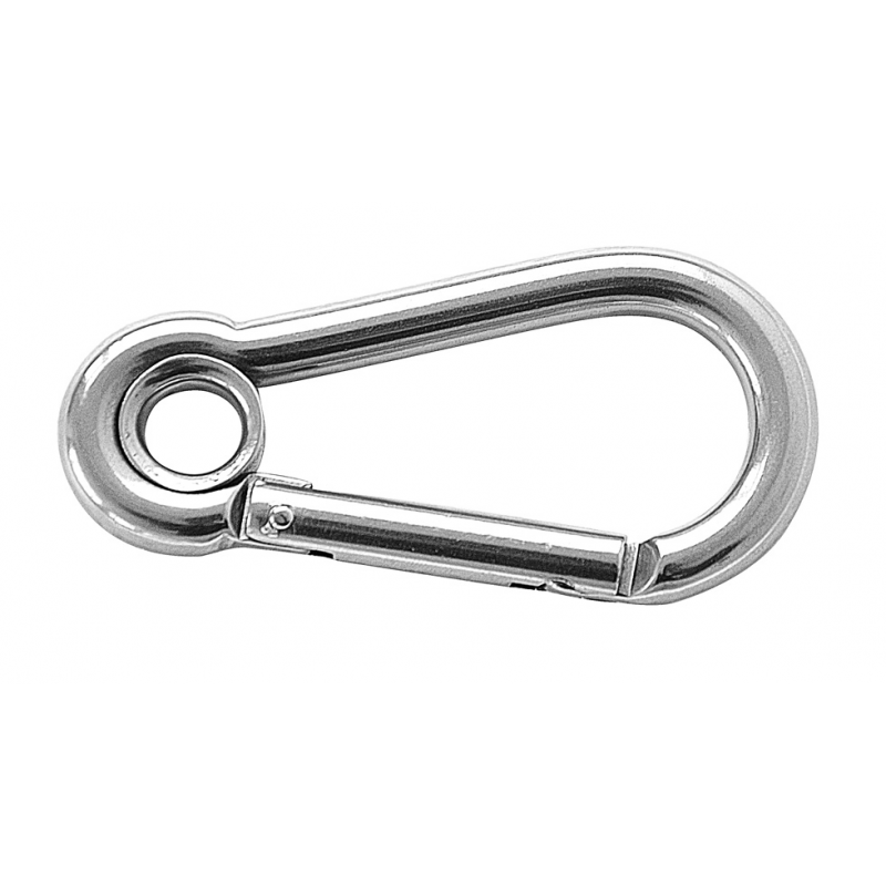 Moschettone in acciaio inox AISI 316 modello a pera con anello nell’occhio con chiusura dritta