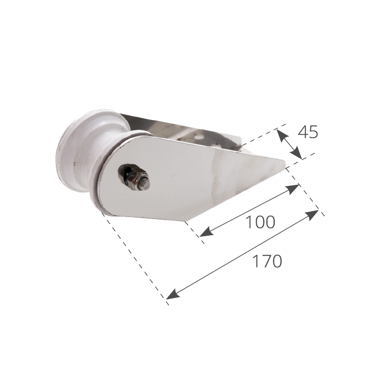 Musone di prua in acciaio inox con puleggia in nylon, dim. base mm. 100 x 45
