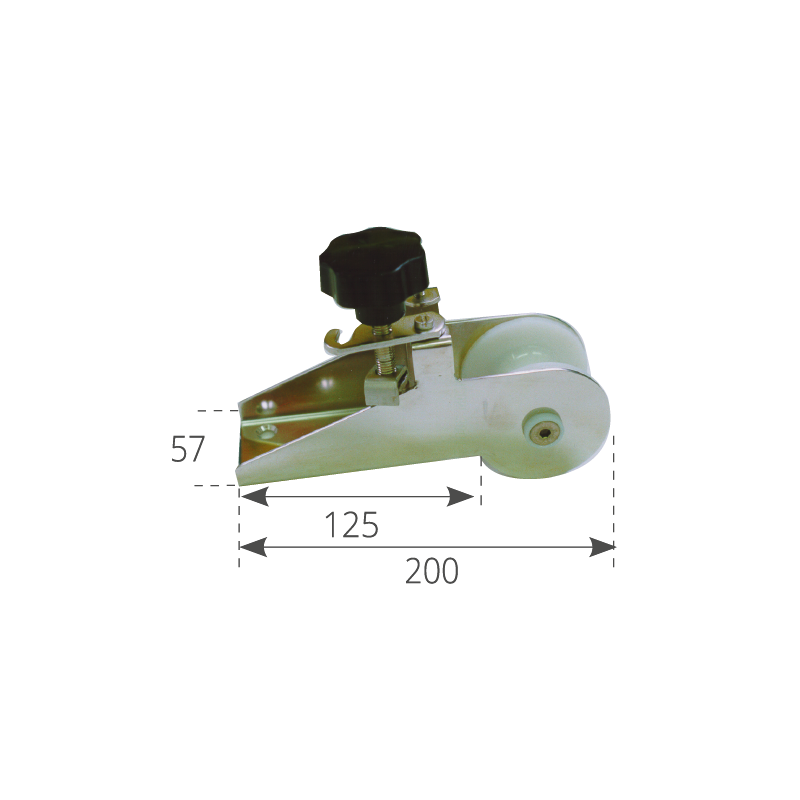 Musone di prua in acciaio inox con puleggia in nylon e arresto per ancora, dim. mm lung. 200 x larg. 57. Superficie di appoggio lunga mm. 125