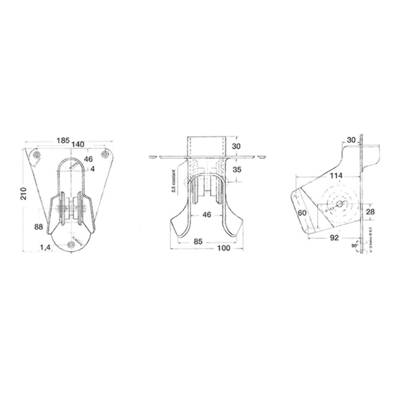Musone di prua in acciaio inox AISI 316 montaggio ad incasso nella delfiniera di gommoni e piccole imbarcazioni. Adatto per ancore fino a kg. 10 e catena max Ø mm. 6.