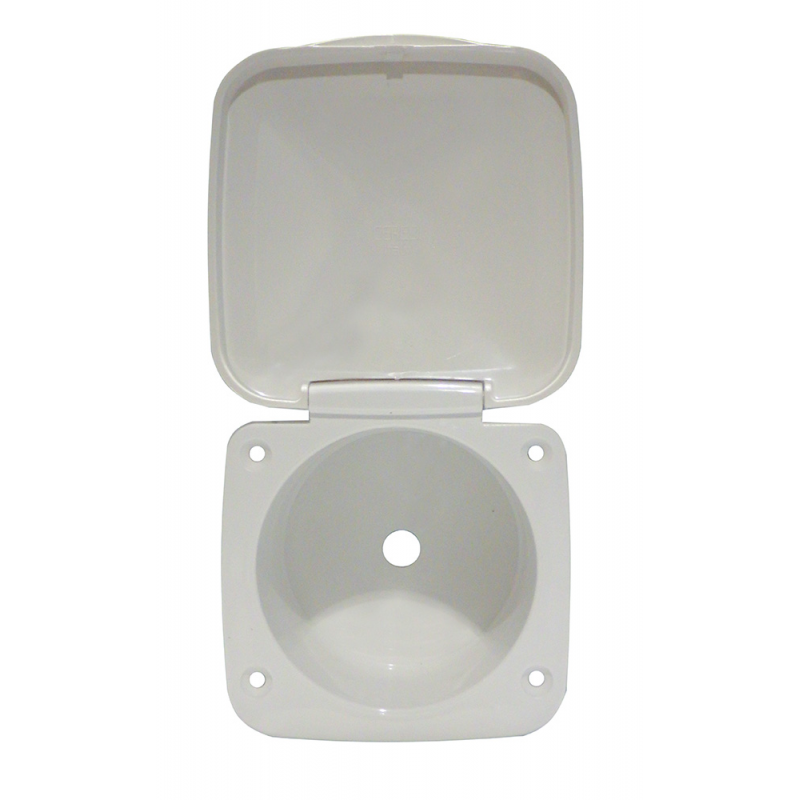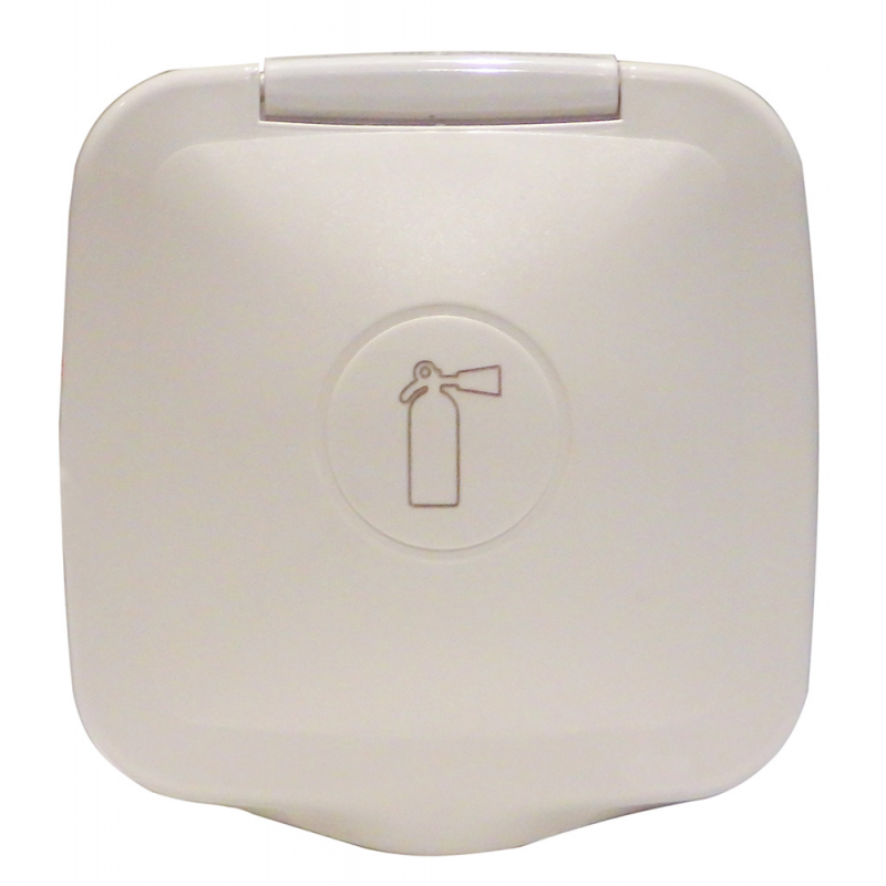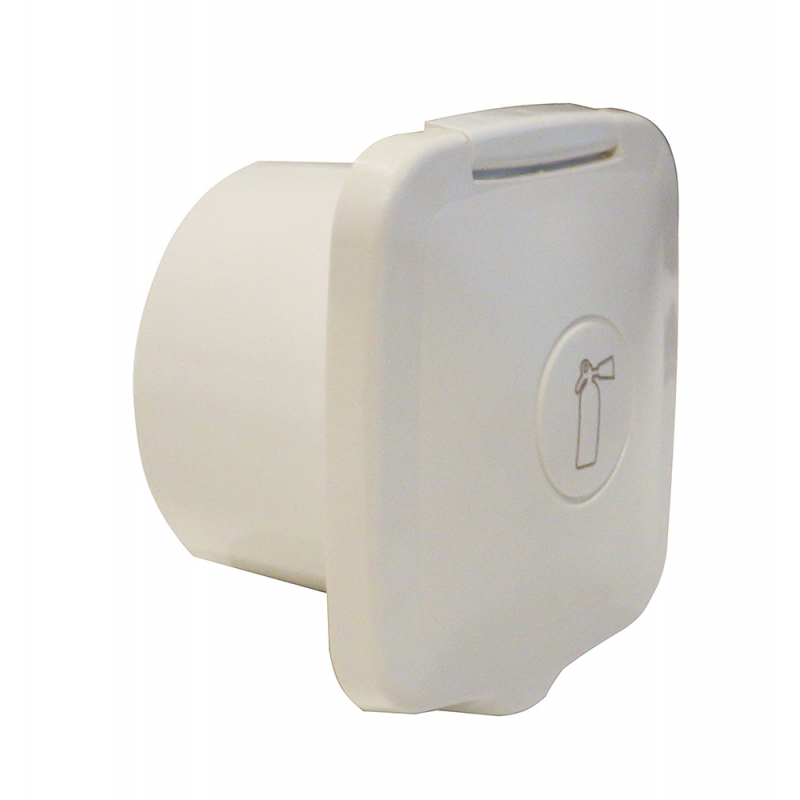 Nicchia in ABS bianco per azionamento estintore. Dim. mm. 100 x 105, Incasso Ø mm. 70. Da utilizzare con cavo STOP B14.
