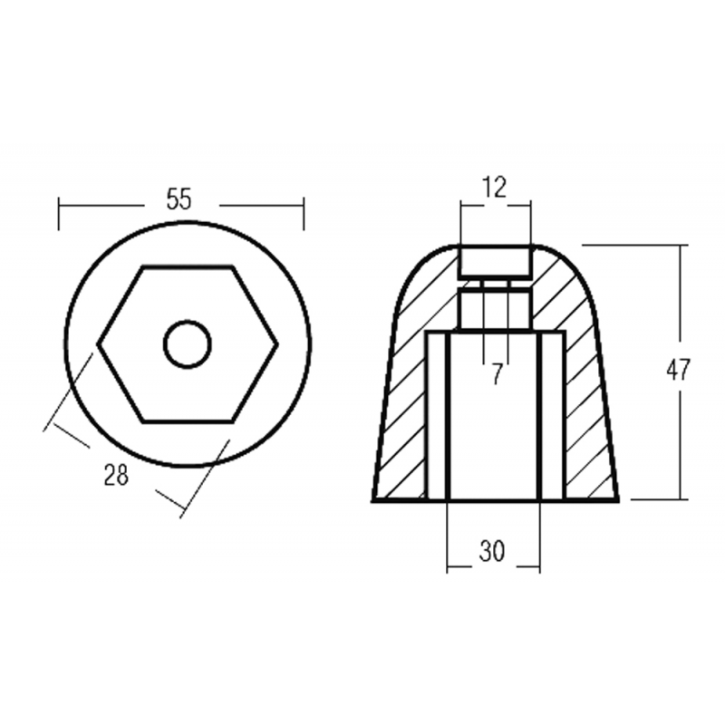 Ogiva esagonalein zinco per bow thrust Vetus (rif. or. BP195)