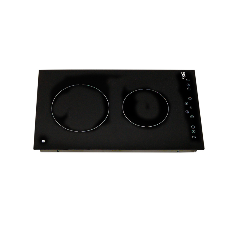 Piano cottura a incasso in vetroceramica, con 2 piastre radianti 220V. 1200/1700 Watt, 6 regolazioni di potenza.