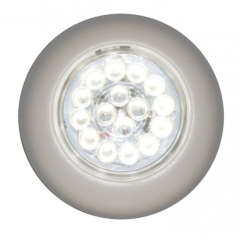 Plafonierain ABS 16 LED ad attivazione Touch. Montaggio a filo. Resistente agli spruzzi d’acqua. Consumo 2,8W. Luce fredda 5500-6300 K 245 lumen,durata 50000 ore.