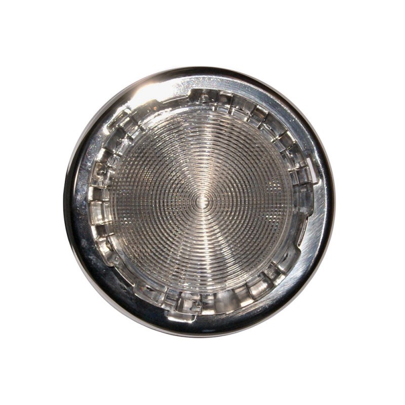 Plafoniera in acciaio inoxcommutazione mediante rotazione della plastica. Completa di lampadina12 V 10W. 2 fori di fissaggio per art: 4040701 e 3 per 4040702.