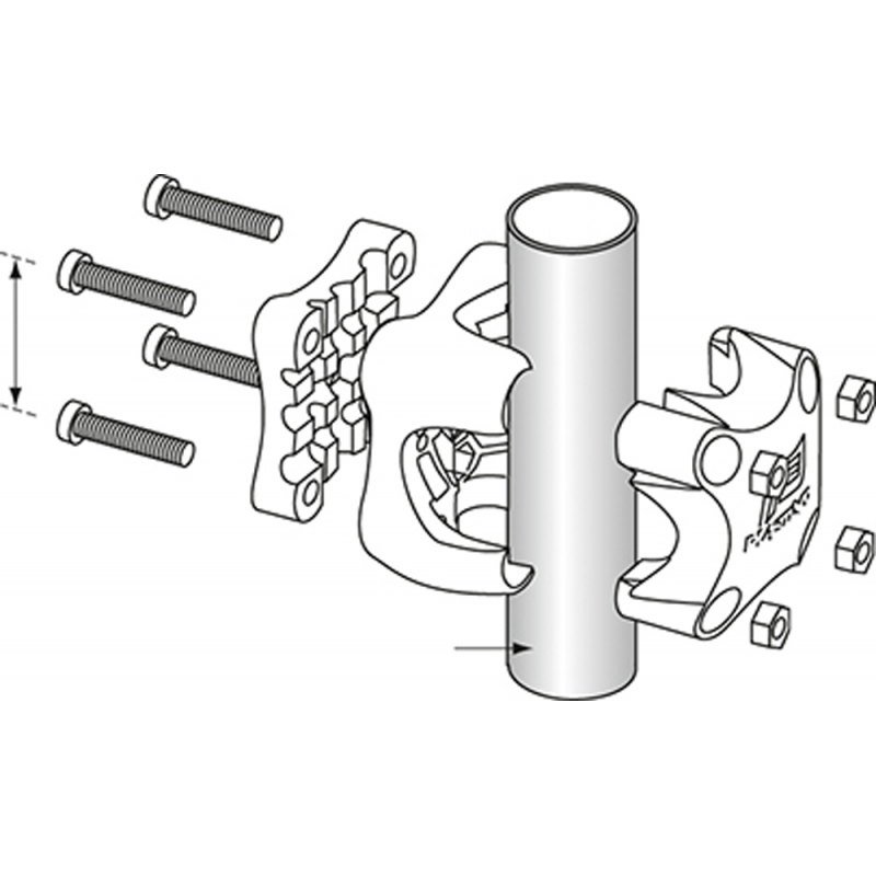 Supporto per fissaggio di accessori o equipaggiamento su pulpiti e tientibene, si adatta a tubi da Ø mm. 18,5 a 25,5. Montaggio semplice, pulito e rapido, senza alcuna foratura. Sul retro è possibile inserire cinghie o elastici (non inclusi).