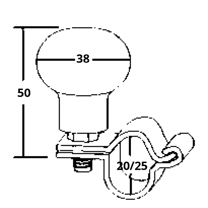 Pomolo girevole in acciaio inox aisi 316 per volante dim. mm. lung. 50 x spessore max. 38 x Ø utilizzabile 20/25