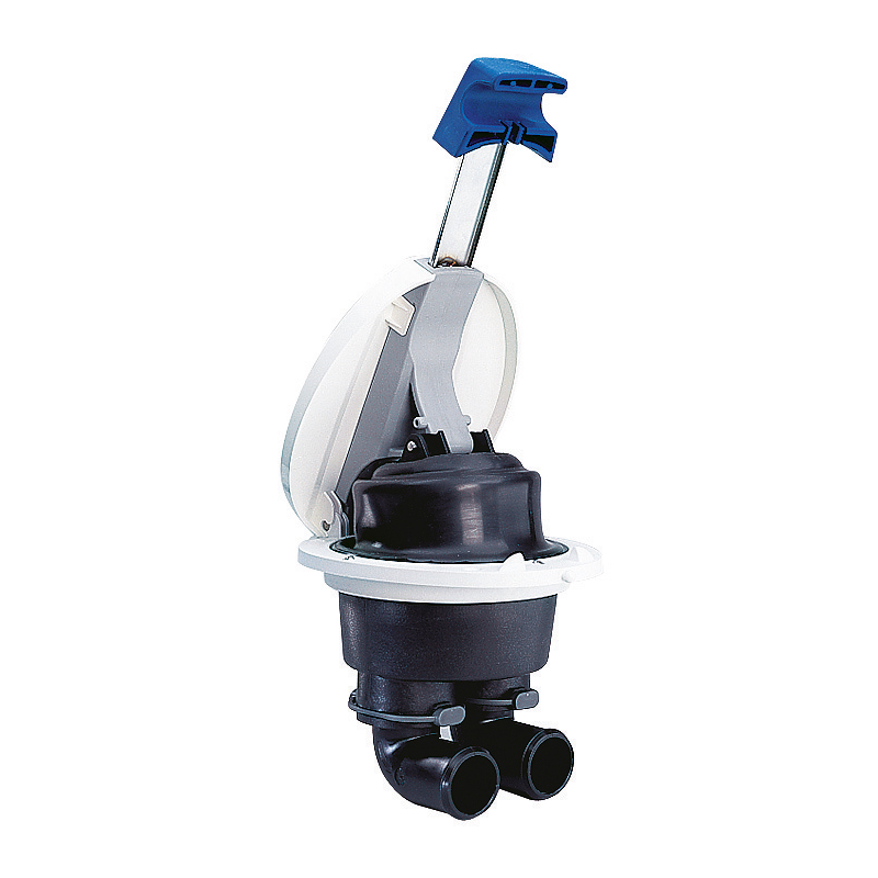 Pompe di sentina ad impugnatura telescopica, fornita di 2 raccordi a gomito con valvole (aspirazione e mandata). Portata a norma ISO 15083.