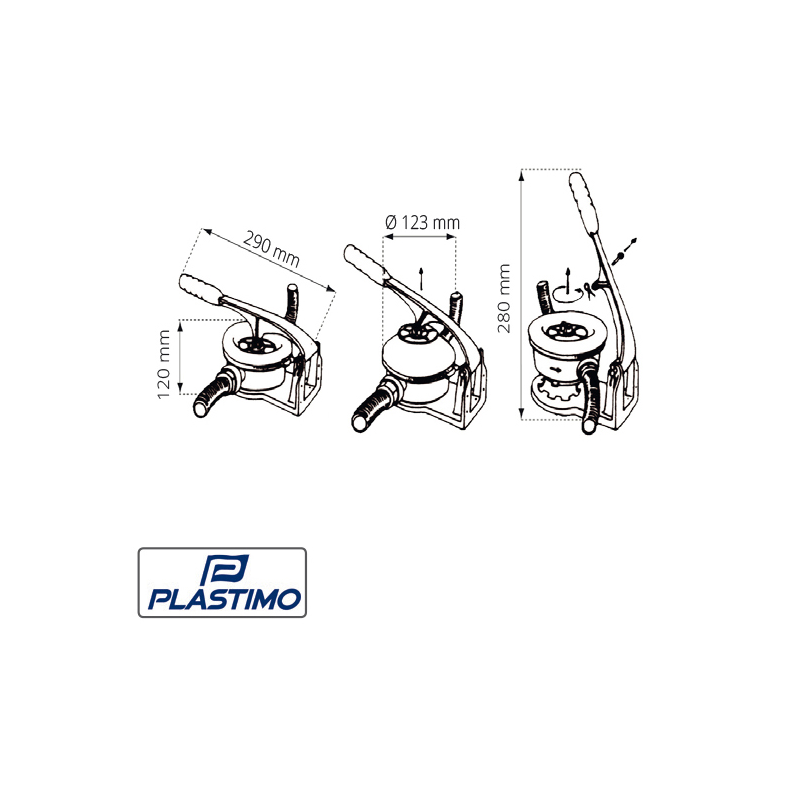 Pompa di sentina a manoin materiale plastico poco ingombrante realizzata in materiale plastico. Parti metalliche in acciaio inox. Montaggio in piano su pagliolo o paratia. Portatubo da Ø mm. 25, portata L. 0.5, a mt 1 di aspirazione, prevalenza mt 3. Dimensioni mm 290 prof. x 123 larg. x 120h/280h con la maniglia.