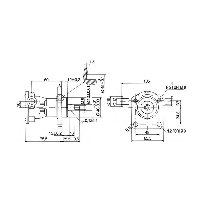 Pompa autoadescante in bronzo, girante in neoprene, per raffreddamento motori, portagomma Ø mm. 20, portata It./min. 9/18 per motori Perkins. Girante di ricambio art. 2727107