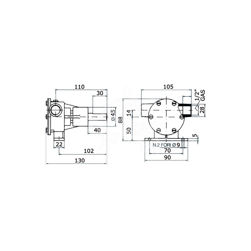 Pompe autoadescanti in bronzo, girante in neoprene, per raffreddamento motori, bocche da 1/2, portata It./min. 17,5/50. Girante di ricambio art. 2727162