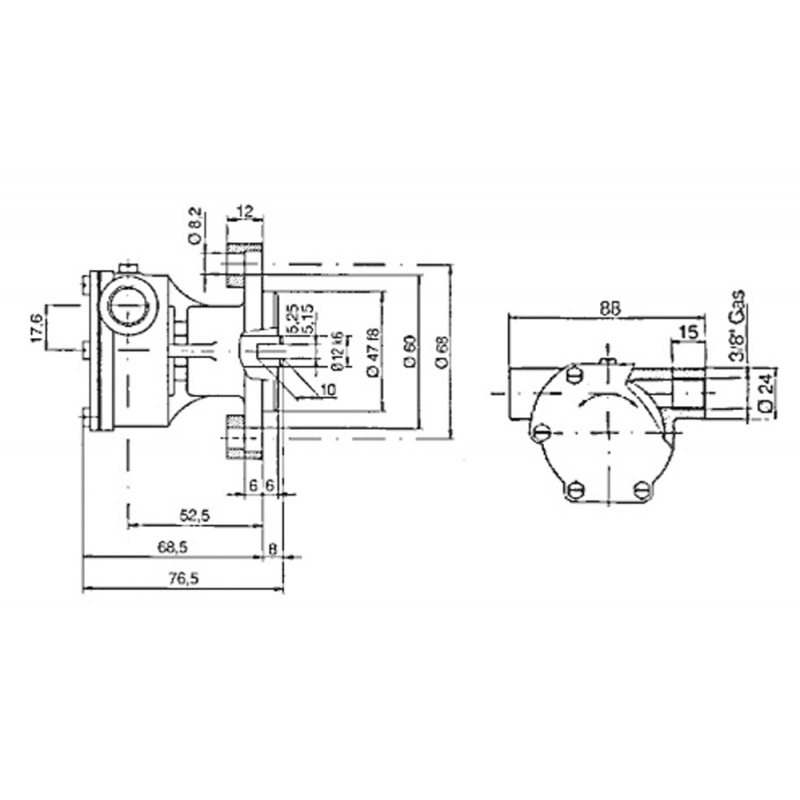 Pompa autoadescante in bronzo, bocche da 3/8, portata It./min. 13/28 per motori LombardiniLDW 903, LDW 2204, Aifo 4041, Volvo Penta AQ-BB-MB-MDI-2000. Girante di ricambio art.2727109