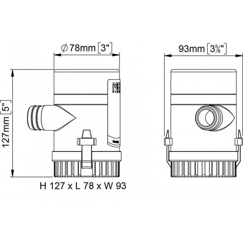 Pompa ad immersione per svuotamento sentina. Involucro in robusto ABS antiurto, resistente alla corrosione ed alla elettrolisi.