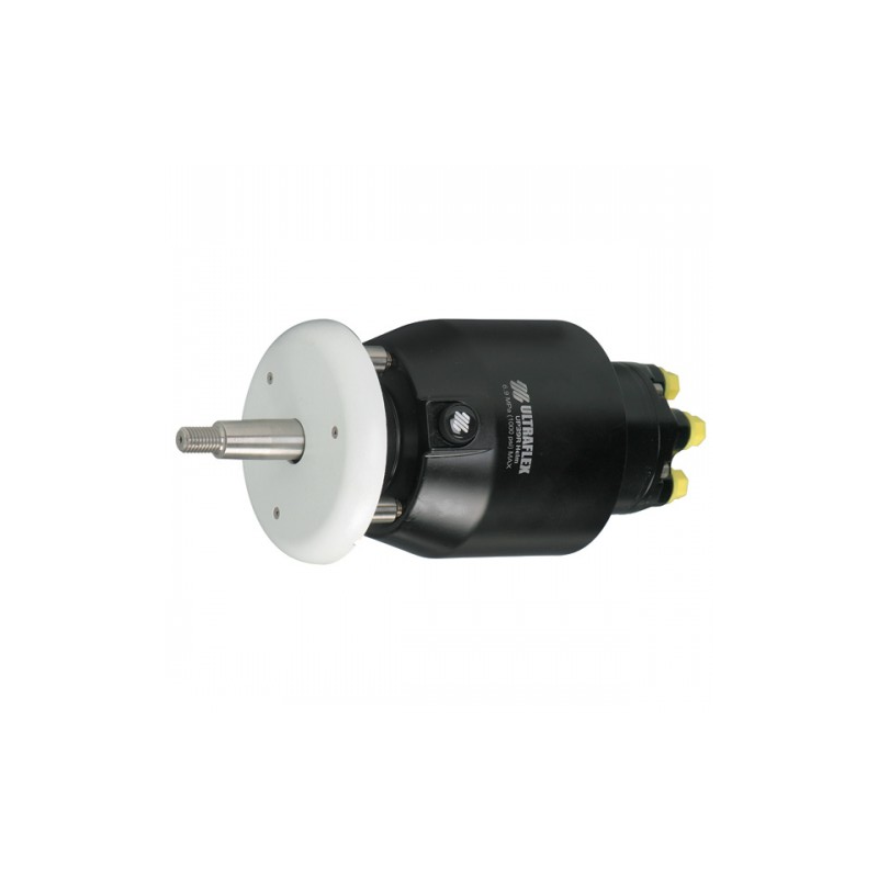 Pompa montaggio retro-cruscotto, struttura compatta, sistema pistoni assiali, valvola di non ritorno che impedisce la reversibilità, valvola di protezione alle sovrapressioni, alberino conico da 3/4 in acciaio inox, rotore in ghisa per una maggiore durata, riempimento olio frontale, completa di raccordi orientabili a 90° per tubo da 3/8. Peso kg.5. Coprimozzo bianco incluso