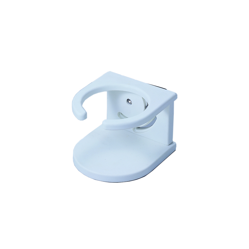 Portabicchiere e lattinain polietilene bianco foro Ø mm. 87.Completo di kit per fissaggio su tubo Ø mm. 22/25. Dimensioni mm. 125x115x90h