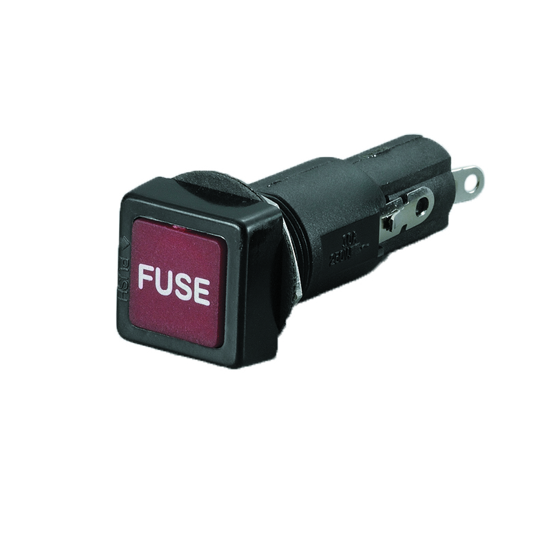 Portafusibile da incasso Max 10A. Tappo a scatto, contatti in ottone argentato, corpo in makrolon caricato vetro dimensioni mm. 16, per fusibili vetro da diametro mm. 6,3 x lung. mm. 32. Per pannelli art. 3939213/216.