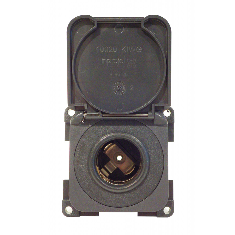 Presa tipo accendisigari12/24 V con coperchio.Equipaggiamento elettrico modulare in plastica grigia ral 7015