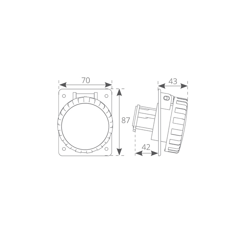 Presa inclinata da incasso per spine art. 3939241. Grado di protezione IP67. Realizzate in conformità alle norme CE - EN60309-1 - EN60309-2